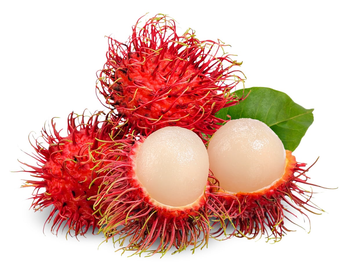 Le ramboutan présente une forme ovale de 3 à 6 cm de longueur, pesant 15 à 25 grammes selon les variétés. Sa caractéristique la plus frappante réside dans sa peau épaisse hérissée de tentacules charnus rouge vif à jaune orangé, lui donnant un aspect unique dans le règne végétal. Cette enveloppe protège une chair translucide blanc nacré, juteuse et parfumée, entourant un gros noyau central ovale non comestible. Cette architecture singulière fait du ramboutan l’un des fruits les plus reconnaissables au monde.