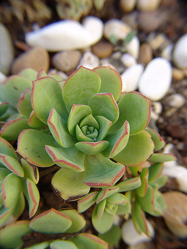 Aeonium haworthii, appelé Aéonium de Haworth, est un arbuste succulent appartenant à la famille des Crassulacées. Native des îles Canaries, cette plante forme des rosaces denses de feuilles charnues, gris-bleuté à pourpre, mesurant entre 30 et 60 cm de hauteur. Son port buissonnant et ramifié crée des touffes étagées très décoratives. Les feuilles persistantes, disposées en spirale, présentent une texture légèrement collante caractéristique du genre Aeonium. Son système racinaire peu profond s'adapte aux sols pauvres et rocailleux de son habitat naturel. Cette vivace vivant plusieurs années se distingue par sa remarquable tolérance à la sécheresse et son feuillage persistant changeant de teinte selon les saisons et l'intensité lumineuse.