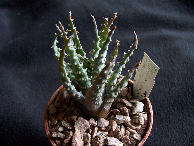 Aloe humilis, appelée Aloès humble, est une plante vivace succulente de petite taille appartenant à la famille des Aloaceae. Originaire d'Afrique du Sud, cette espèce forme des rosettes compactes de feuilles charnues, étroites et pointues, de teinte vert-bleuâtre souvent teintée de rouge ou de rose, particulièrement en exposition ensoleillée. Elle mesure généralement entre 10 et 20 centimètres de hauteur. Aloe humilis se distingue par ses inflorescences tubulaires dressées aux coloris variés—rose, rouge, orange ou jaune—qui fleurissent abondamment pendant les mois d'hiver et de printemps, attirant pollinisateurs et insectes. Son port très compact la rend idéale pour les cultures en pot et les compositions succulentes.