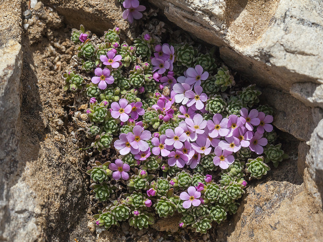 L'Androsace alpina préfère une exposition ensoleillée à mi-ombragée et nécessite un sol bien drainé, idéalement limoneux ou caillouteux, rappelant ses conditions naturelles d'altitude. Elle tolère mal l'excès d'humidité stagnante mais apprécie un arrosage régulier à moyen ou important en période de croissance et de floraison. Rusticité excellente au froid, cette vivace alpine supporte les hivers rigoureux. La plantation doit se faire au printemps ou en automne précoce. Un paillage minéral (petit gravier) favorise le drainage et protège le collet. Peu exigeante en entretien une fois établie, elle demande juste un arrosage modéré en été et un bon drainage constant. Idéale pour les jardins de rocaille, les murets et les conteneurs bien drainés.