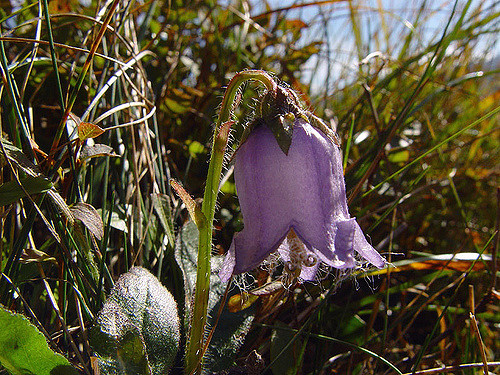 Campanula barbata est une plante vivace herbacée appartenant à la famille des Campanulaceae, caractérisée par ses fleurs bleu ciel distinctives dotées de cils ou « barbes » sur les pétales, d'où son nom vernaculaire. Cette espèce atteint généralement 30 à 60 cm de hauteur et se développe en touffes compactes. Originaire des régions alpines et subalpines d'Europe centrale et méridionale, elle colonise les prairies de montagne, les éboulis calcaires et les zones rocheuses bien drainées. Son feuillage caduc et ses tiges dressées portent des feuilles lancéolées de couleur vert moyen. La floraison spectaculaire survient en juillet, produisant des grappes de clochettes pendantes d'un bleu intense. C'est une plante très reconnaissable grâce aux appendices velus qui ornent ses pétales, la distinguant des autres campanules alpines.