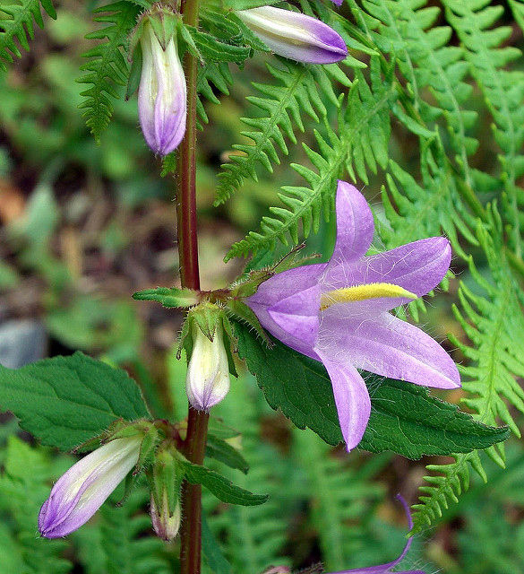 La Campanule gantelée (Campanula trachelium) est une plante vivace herbacée appartenant à la famille des Campanulacées. Elle atteint une hauteur de 60 à 90 centimètres et se caractérise par des tiges anguleuses et velues. Ses feuilles sont ovales, dentées et présentent une texture rugueuse distinctive. Les fleurs, réunies en grappes denses, arborent une teinte violet-bleu soutenu et possèdent une corolle campanulée typique du genre. L'espèce est native d'Europe et d'Asie mineure, où elle pousse naturellement en milieux forestiers et herbeux semi-ombragés. Sa rusticité exceptionnelle lui permet de prospérer dans les climats tempérés sans protection hivernale particulière.