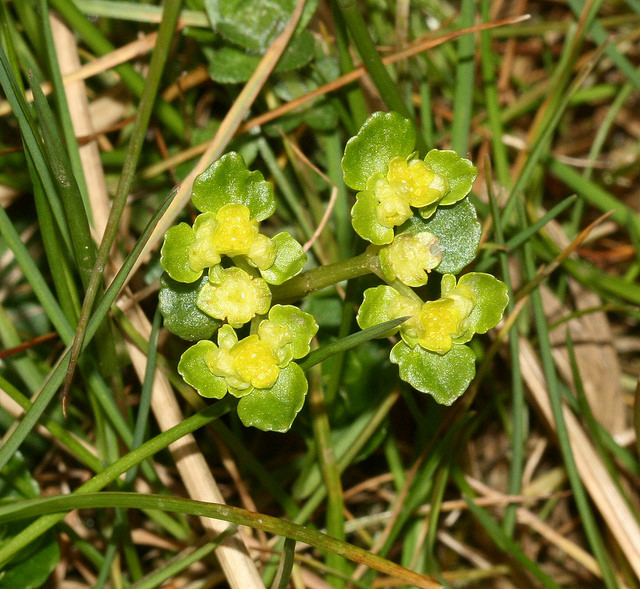 La Dorine à feuilles opposées est une petite plante vivace herbacée appartenant à la famille des Saxifragaceae, caractérisée par ses feuilles opposées arrondies et charnues. Elle mesure généralement entre 15 et 30 cm de hauteur et présente une croissance en touffes denses. Ses tiges sont souvent rougeâtres et succulentes, tandis que ses feuilles forment des rosaces compactes. Originaire des régions tempérées humides d'Europe, elle pousse naturellement dans les zones boisées, les sources et les ruisseaux, particulièrement sur les roches suintantes. La plante se distingue par ses fleurs minuscules en grappes jaune pâle, dépourvues de pétales mais dotées de sépales colorés qui assurent l'attraction pollinisatrice.