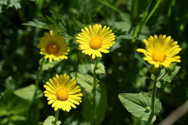 Le Doronic à feuilles cordées (Doronicum pardalianches) est une plante vivace herbacée appartenant à la famille des Asteraceae. Elle mesure généralement entre 30 et 60 cm de hauteur avec un port dressé et ramifié. Ses feuilles basales sont cordiformes (en forme de cœur), d'où son nom vernaculaire, tandis que les feuilles caulinaires sont plus réduites et amplexicaules. Originaire des régions montagneuses d'Europe centrale et méridionale, cette espèce pousse naturellement dans les prairies humides et les sous-bois clairs. Ses tiges sont pubescentes et ses capitules floraux, d'un jaune éclatant, apparaissent en grappes. Le rhizome souterrain permet à la plante de se pérenniser et de se multiplier végétativement.