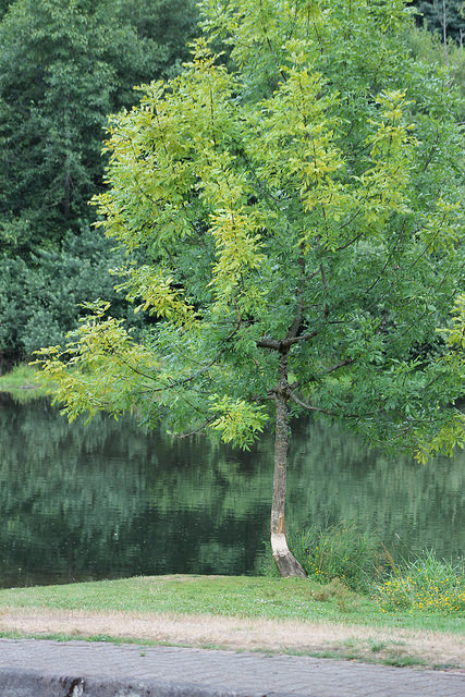Le Frêne à larges feuilles (Fraxinus latifolia), originaire de la côte ouest de l'Amérique du Nord, est un arbre caduc de la famille des Oléacées. Il se distingue par son feuillage composé avec des folioles larges et nombreuses, lui donnant une silhouette élancée et gracieuse. Cet arbre atteint généralement 15 à 25 mètres de hauteur, doté d'un tronc droit et d'une écorce gris-brun caractéristique. Son port étalé en fait un excellent sujet d'ornement dans les paysages tempérés. Les bourgeons sont brun foncé et le bois présente une structure distinctive typique du genre Fraxinus. Cette espèce se cultive bien en climat tempéré où elle exprime pleinement sa vigueur et son esthétique naturelle.