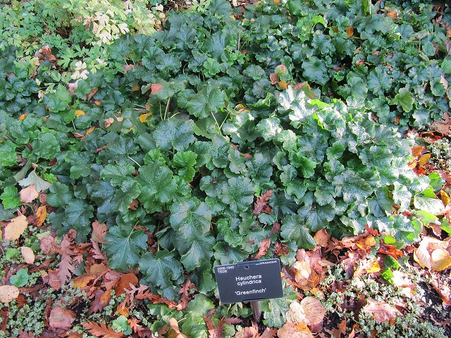Heuchera cylindrica, communément appelée Heuchère cylindrique, est une plante vivace herbacée appartenant à la famille des Saxifragacées. Originaire des régions montagneuses de l'ouest de l'Amérique du Nord, elle se caractérise par un port en touffes denses de feuilles basales arrondies à légèrement lobées, persistantes toute l'année. La plante atteint généralement 30 à 50 centimètres de hauteur. Son trait distinctif réside dans ses inflorescences cylindriques dressées portant de minuscules fleurs jaune pâle à crème, produites de manière abondante du printemps à l'été. Le feuillage souvent teinté de bronze ou de pourpre ajoute une dimension ornementale supplémentaire. Cette espèce se distingue par sa robustesse et son adaptation à des conditions variées.