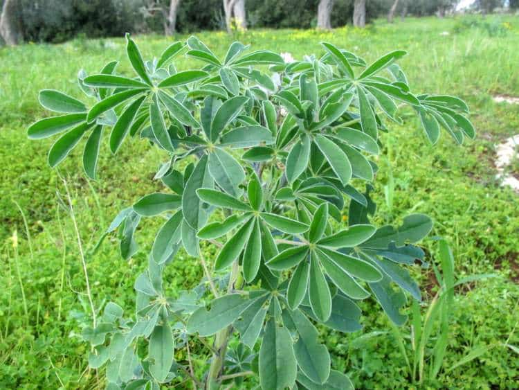 Le lupin blanc (Lupinus albus) est une plante annuelle appartenant à la famille des Fabacées, originaire du pourtour méditerranéen. Cette plante herbacée mesure généralement entre 40 et 80 cm de hauteur, avec un port dressé et ramifié. Elle possède des feuilles palmées, composées de 7 à 9 folioles, de texture douce et de couleur vert moyen. Les inflorescences se présentent sous forme de longs épis denses, fleurissant en blanc ou bleu selon les variétés, ornés de petites fleurs papillonacées typiques des légumineuses. Les fruits sont des gousses plates et poilues contenant les graines caractéristiques, aplaties et lisses, de couleur blanche ou tachetée. Cette espèce apprécie les régions ensoleillées à semi-ombragées et tolère bien les sols pauvres.