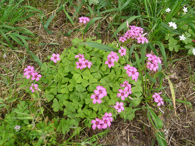 L'oxalide articulée est une plante vivace herbacée appartenant à la famille des Oxalidaceae, originaire d'Amérique du Sud (particulièrement du Brésil et d'Argentine). Elle se caractérise par un port compact et traçant, formant des touffes denses de 20 à 40 cm de hauteur. Son feuillage persistant est composé de petites feuilles trifoliolées, délicates et finement textilées, de couleur verte parfois teintée de pourpre selon les conditions de culture. La plante produit de nombreuses petites fleurs roses ou blanches, regroupées en petites ombelles, qui éclosent généreusement de juin à octobre. Ses tiges souterraines rhizomateuses lui permettent de se multiplier et de coloniser rapidement l'espace. C'est une espèce très rustique et adaptable, capable de prospérer dans des conditions variées.