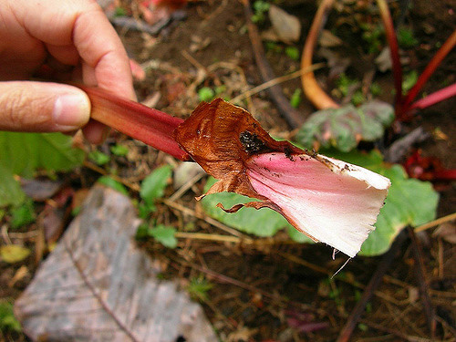 Rheum rhaponticum joue un rôle écologique modeste dans les écosystèmes montagnards où elle prospère naturellement. Ses fleurs blanches attirent les pollinisateurs, notamment les insectes butineurs, contribuant à la biodiversité locale. Cette espèce s'adapte à des conditions environnementales variées et participe à la stabilisation des sols dans les zones de montagne. Cependant, comme de nombreuses plantes sauvages des régions montagneuses, elle est affectée par les transformations d'habitats et le réchauffement climatique, qui modifient les conditions d'humidité et les cycles saisonniers des écosystèmes d'altitude. La plante présente un intérêt pour la transition alimentaire en tant que source alimentaire traditionnelle dans ses régions d'origine, bien que son exploitation reste limitée face aux cultivars domestiqués.