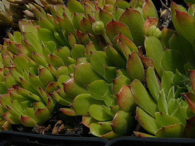 Sempervivum zeleborii est une plante vivace succulente appartenant à la famille des Crassulacées, caractérisée par ses rosettes denses et compactes de feuilles charnues persistantes. Cette joubarbe forme des tapis étalés, typiques du genre Sempervivum, avec des rosettes mères qui produisent de nombreux rejets latéraux créant une structure en colonies. La plante atteint une hauteur modérée, idéale pour les jardins de rocaille et les toitures végétalisées. Originaire des régions montagneuses, elle s'adapte à des conditions difficiles. Ses fleurs jaunes ou blanches apparaissent en grappes dressées durant l'été, attirant les pollinisateurs. Ses feuilles prennent souvent des teintes rougeâtres ou pourpres en fonction des conditions lumineuses et thermiques, offrant un intérêt ornemental prolongé.