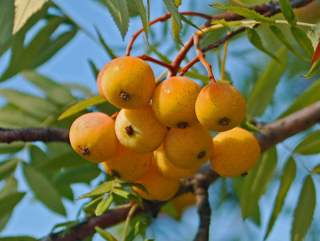 Le Cormier (Sorbus domestica) est un arbre de taille moyenne appartenant à la famille des Rosacées, pouvant atteindre 15 à 20 mètres de hauteur. Il se distingue par son port érigé et élancé, ses feuilles caduques composées pennées qui deviennent dorées à l'automne, et son écorce gris-brun caractéristique. Originaire d'Europe du Sud et du Moyen-Orient, il colonise naturellement les forêts mixtes tempérées. Le Cormier produit des petites fleurs blanches en mai-juin, réunies en corymbes, suivies de fruits ovoïdes brunâtres ressemblant à de petites pommes. C'est une espèce rustique et peu exigeante, autrefois cultivée pour ses fruits comestibles.