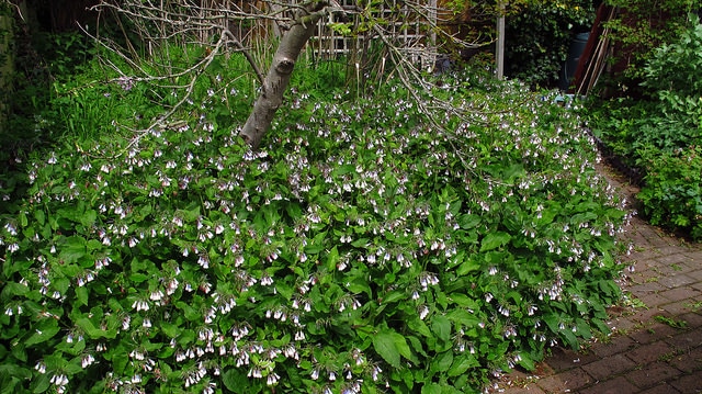Symphytum orientale est une plante vivace rustique, parfaitement adaptée aux jardins tempérés. Elle apprécie une exposition en soleil ou mi-ombre, les deux conditions permettant une bonne floraison. Le sol argileux lui convient particulièrement bien ; cette espèce améliore même les terres compactes. Un arrosage moyen suffit à son développement ; une fois établie, elle tolère bien les variations d'humidité. La plantation se fait idéalement en automne ou au printemps. Aucune taille spéciale n'est nécessaire, bien qu'on puisse rabattre les tiges en fin de saison. Sa rusticité complète garantit sa pérennité dans les zones tempérées. Cette plante demande peu d'entretien et se renforce avec les années, formant progressivement des touffes denses et productives.