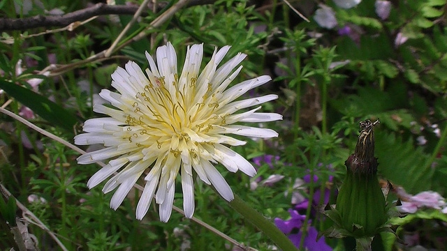 Taraxacum albidum est une plante vivace appartenant à la famille des Astéracées, caractérisée par ses fleurs blanches distinctives, rare parmi les espèces du genre Taraxacum généralement jaunes. Cette espèce herbacée présente une rosette basale de feuilles dentées et un système racinaire profond typique du genre. La plante atteint généralement 20 à 40 cm de hauteur et se reconnaît facilement à ses capitules floraux blanc pur, qui apparaissent au printemps. Originaire d'habitats tempérés et montagneux, Taraxacum albidum colonise les prairies, les pâturages et les zones perturbées où elle prospère en tant que plante pionnière. Ses feuilles basales sont profondément laciniées, formant une rosette compacte avant l'émission de la hampe florale.