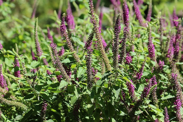 Comme de nombreuses espèces du genre Teucrium, la Germandrée hyrcanicum possède des propriétés traditionnellement reconnues en phytothérapie. Les Labiatae sont généralement riches en composés aromatiques et en huiles essentielles aux propriétés digestives, toniques et anti-inflammatoires. Les parties aériennes de cette plante sont utilisées historiquement pour préparer des infusions bénéfiques à la digestion et au bien-être général. En médecine traditionnelle des régions caspiennes, elle est employée comme tonique gastrique et pour ses propriétés apaisantes. Sur le plan ornemental, sa floraison spectaculaire rouge-violet et son feuillage semi-persistant en font une excellente plante pour les rocailles, les massifs méditerranéens et les jardins de graviers. Sa rusticité et sa faible consommation en eau la rendent idéale pour l'aménagement de jardins durables.