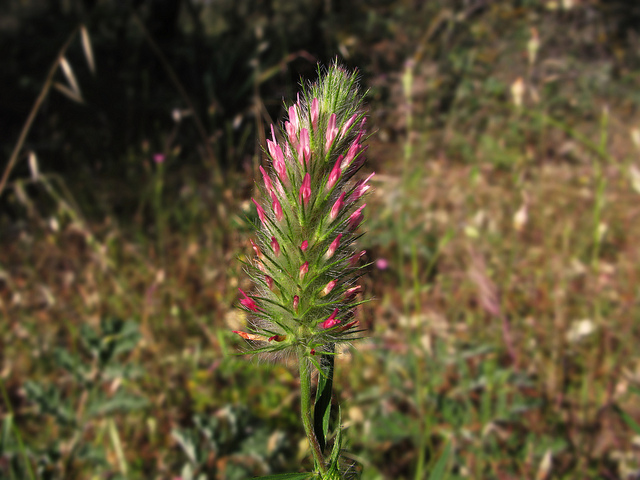 Trifolium rubens, connu sous le nom de Trèfle rougeâtre, est une plante vivace herbacée appartenant à la famille des Fabaceae. Cette espèce se distingue par ses inflorescences denses et allongées de couleur rose à violet-rouge, caractéristiques qui lui ont valu son nom vernaculaire. Le Trèfle rougeâtre présente un port compact et touffu, atteignant généralement 20 à 40 cm de hauteur. Ses feuilles sont trifoliées, typiques du genre Trifolium, avec un feuillage caduc qui disparaît en hiver. Originaire des régions méditerranéennes et d'Asie occidentale, cette espèce s'est progressivement naturalisée en Europe centrale et méridionale, où elle prospère dans les prairies sèches et les friches.