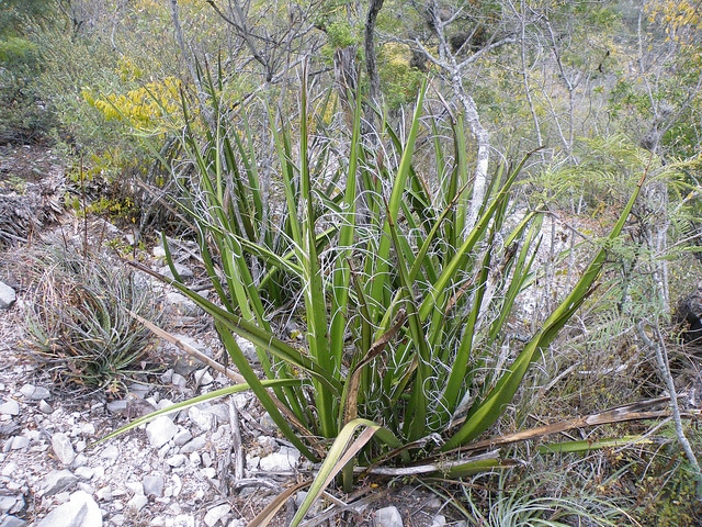 Le Yucca filifera, couramment appelé Yucca à feuilles filiformes, est un arbre succulent de la famille des Agavaceae originaire des régions arides du Mexique. Il se caractérise par un port dressé et ramifié, pouvant atteindre 8 à 12 mètres de hauteur à maturité. Son tronc gris-brun porte des rosettes terminales de feuilles persistantes, étroites et pointues, de couleur vert-gris. Ces feuilles présentent des filaments caractéristiques qui se détachent des bords, d'où son nom vernaculaire. L'espèce produit de spectaculaires inflorescences en panicules denses de fleurs blanc crème, suivies de fruits capsulaires. Bien adapté aux environnements semi-arides, ce yucca représente une forme de vie végétale particulièrement bien spécialisée à la sécheresse.
