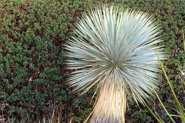 Yucca rostrata, communément appelé Yucca rostrata, est un arbuste vivace appartenant à la famille des Agavacées. Originaire des régions désertiques du Mexique, particulièrement du nord du pays, cette plante se distingue par son port compact et son silhouette élancée. Elle développe une rosette dense de feuilles persistantes, fines et pointues, de couleur bleu-gris, formant une sphère élégante pouvant atteindre 2 à 3 mètres de hauteur. Les feuilles, caractéristiques de la famille, sont étroites et rigides. Le Yucca rostrata se reconnaît à son port en boule régulière et harmonieuse, qui en fait une plante ornementale très recherchée. Son nom vernaculaire évoque souvent ses structures florales en épis denses.