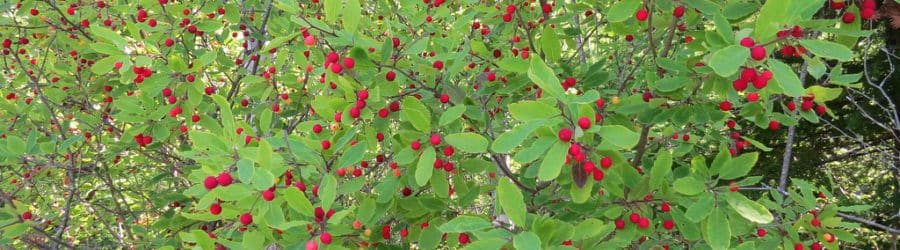 Les fleurs sont petites, verdâtres à blanchâtres, généralement solitaires ou groupées par deux à l’aisselle des feuilles. Elles sont unisexuées, portées sur des individus dioïques. Les fruits sont des drupes globuleuses de couleur rouge à maturité, contenant généralement quatre noyaux et persistant souvent sur la plante après la chute des feuilles automnales.